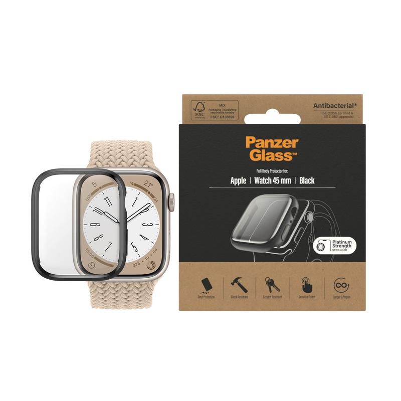 PanzerGlass antibakteriell helkroppsbeskyttelse for Apple Watch Series 9, Apple Watch Series 8, Apple Watch Series 7