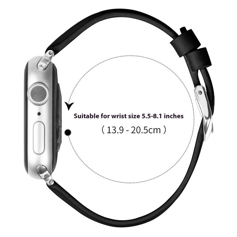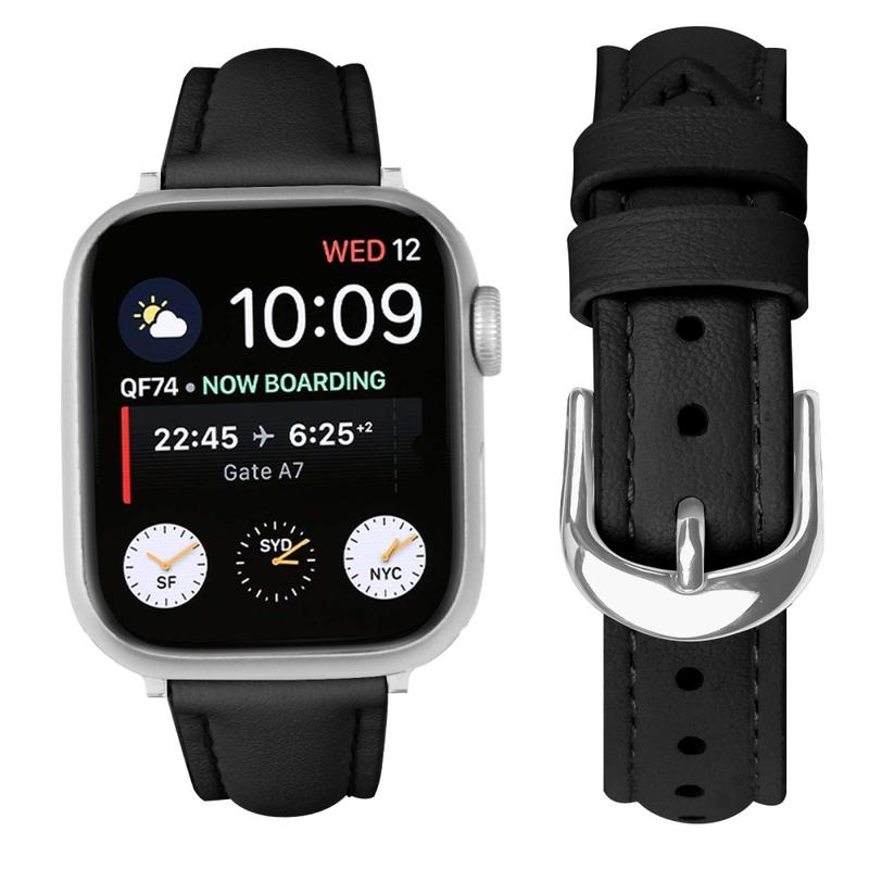 Tynn lærrem til Apple Watch Series 11, Apple Watch Series 10, Apple Watch Series 9, Apple Watch Series 8, Apple Watch SE 3, Apple Watch SE (2022), Apple Watch Series 7, Apple Watch SE, Apple Watch Series 6, Apple Watch Series 5, Apple Watch Series 4, Apple Watch Series 3, Apple Watch Series 2, Apple Watch Series 1 - myk lærrem med sølvspenne