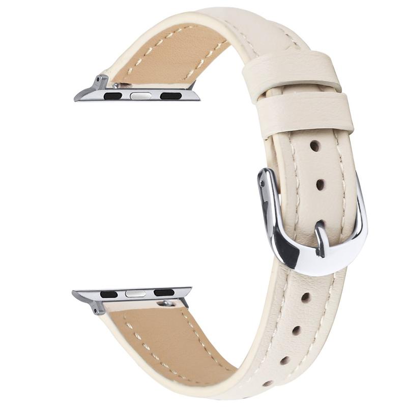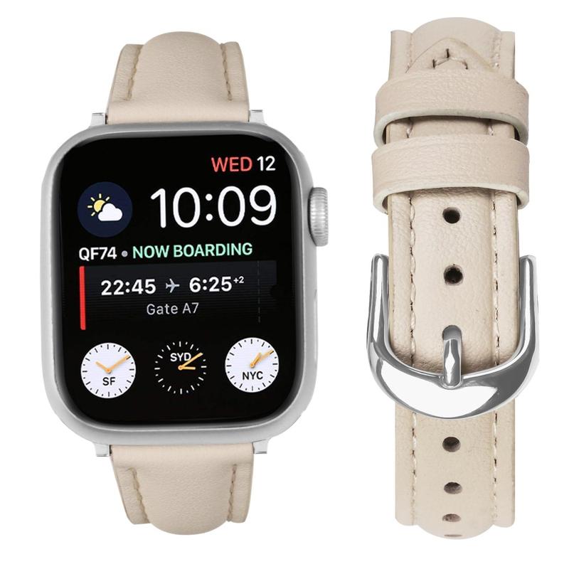Tynn lærrem til Apple Watch Series 11, Apple Watch Series 10, Apple Watch Series 9, Apple Watch Series 8, Apple Watch SE 3, Apple Watch SE (2022), Apple Watch Series 7, Apple Watch SE, Apple Watch Series 6, Apple Watch Series 5, Apple Watch Series 4, Apple Watch Series 3, Apple Watch Series 2, Apple Watch Series 1 - myk lærrem med sølvspenne