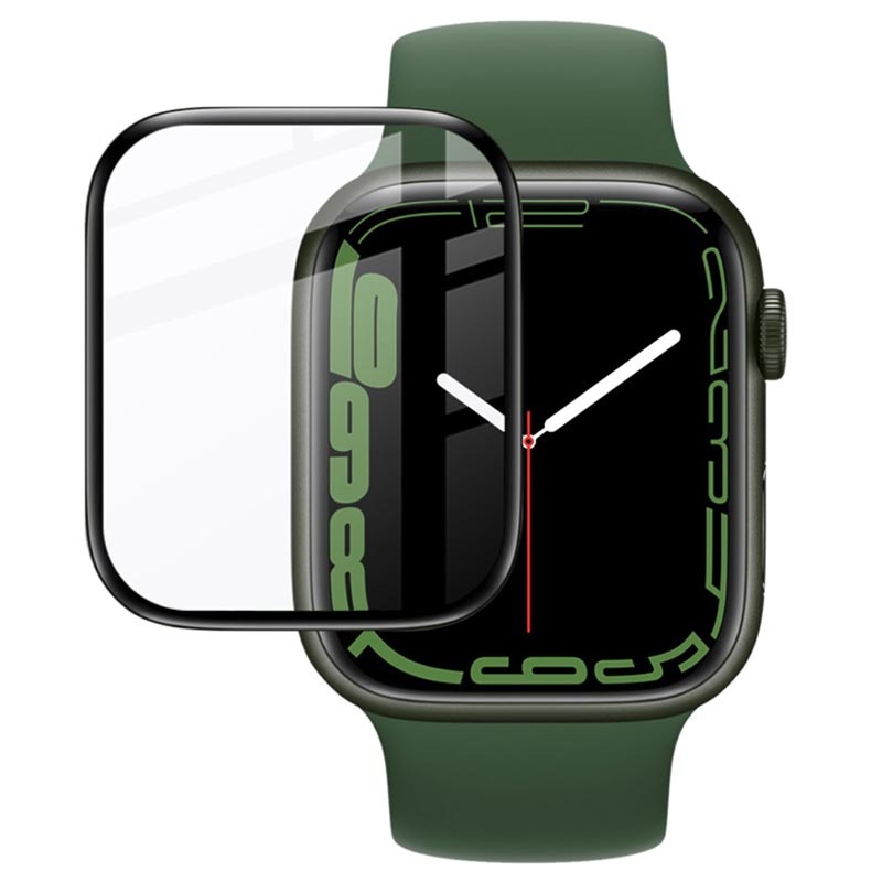 Med en Imak Full Coverage skjermbeskytter i herdet glass laget av PMMA-glass, er Apple Watch Series 9/8/7 trygg mot støt, riper, støt. Den svarte skjermbeskytterkanten gir deg et mer tiltalende utseende, og det ultratynne glasslaget forstyrrer ikke vanlig bruk av Apple Watch Series 9/8/7.