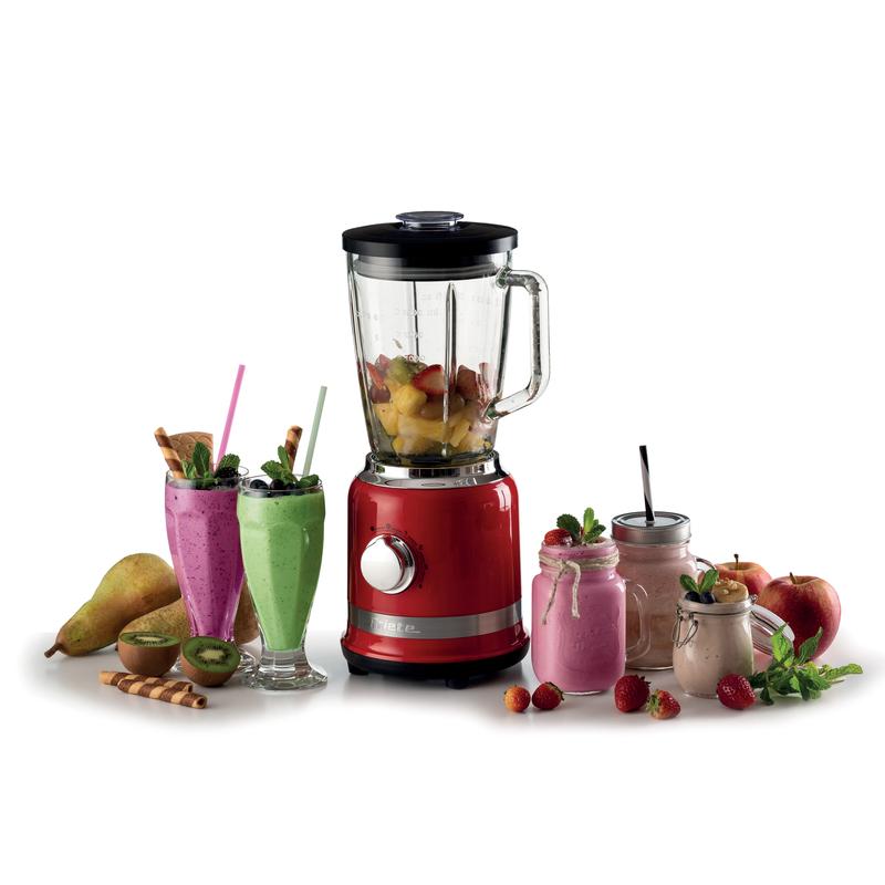 Ariete Moderna Blender med 1,5 liters glasskopp er det ideelle kjøkkenapparatet for å lage en rekke ulike drikker og oppskrifter. Med en kraftig motor på 1000 W og 4 kniver i rustfritt stål kan du enkelt blande smoothies, knuse is og purere grønnsaker. Blenderen har 4 hastigheter og en Pulse-funksjon, slik at du kan tilpasse konsistensen på ingrediensene dine. Glasskoppen er både slitesterk og praktisk, og har en måleskala og et avtakbart lokk som gjør det enkelt å tilsette ingredienser midt i miksen.