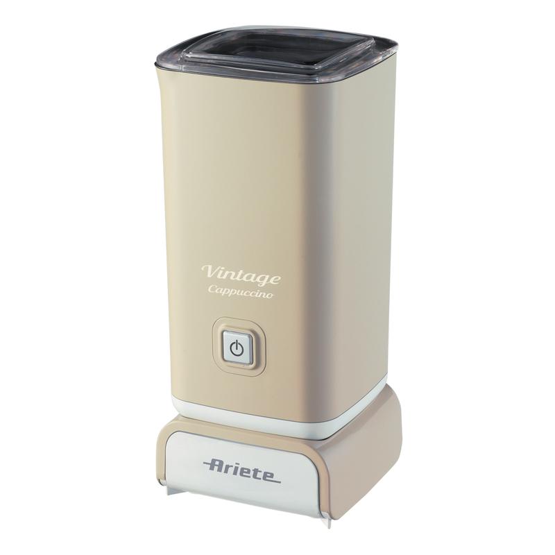 Ariete Vintage melkeskummer i beige er et must-have for kaffeentusiaster som elsker skummende melk. Den har et retrodesign som kombinerer estetikk og praktisk funksjonalitet, med en skumkapasitet på 140ml og en varmekapasitet på 250 ml. Med en kraftig motor på 500 W skummer eller varmer den raskt opp melk til cappuccino, latte eller kalde drikker. Non-stick-innredningen gjør den enkel å rengjøre, mens den automatiske avstengningsfunksjonen gir ekstra sikkerhet og bekvemmelighet.