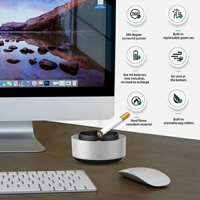 AS-08 Røykfjernende luftrenser Askebeger - Batteridrevet skrivebordsaskefat med komposittfilter som absorberer røyk