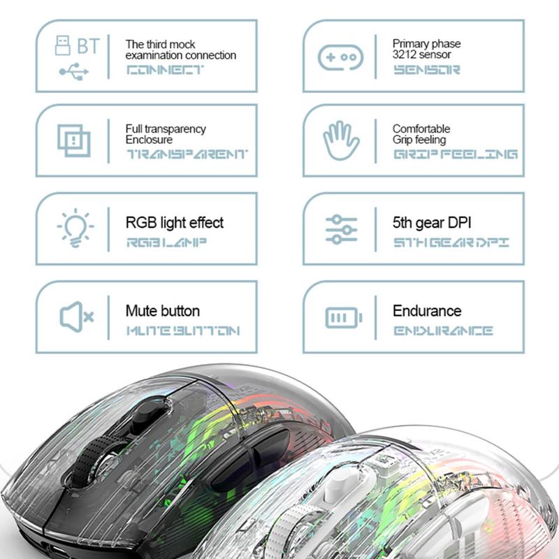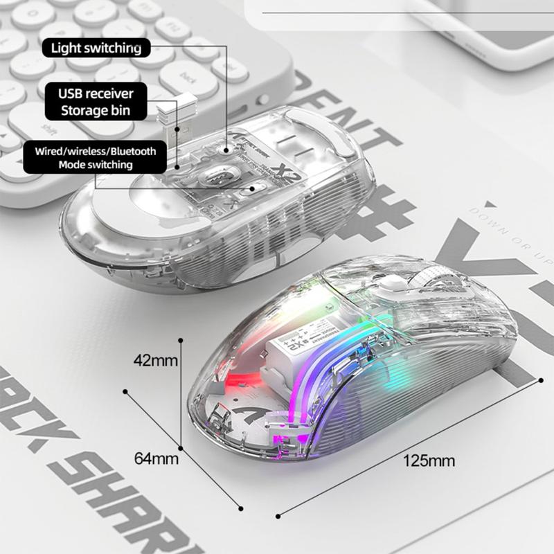 Attack Shark X2 Transparent trådløs mus med RGB og 5 DPI-moduser