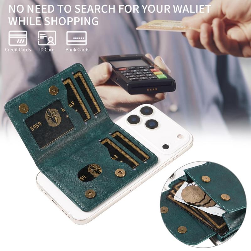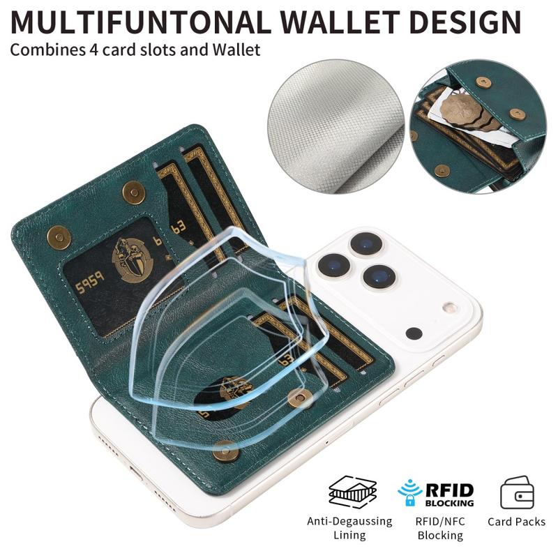 Denne lommeboken tilbyr funksjonalitet, sikkerhet og stil i ett kompakt tilbehør. Med sterk magnetisk festeanordning, RFID-beskyttelse og et innebygd stativ forenkler den den daglige bæringen samtidig som den forbedrer telefonens brukervennlighet.