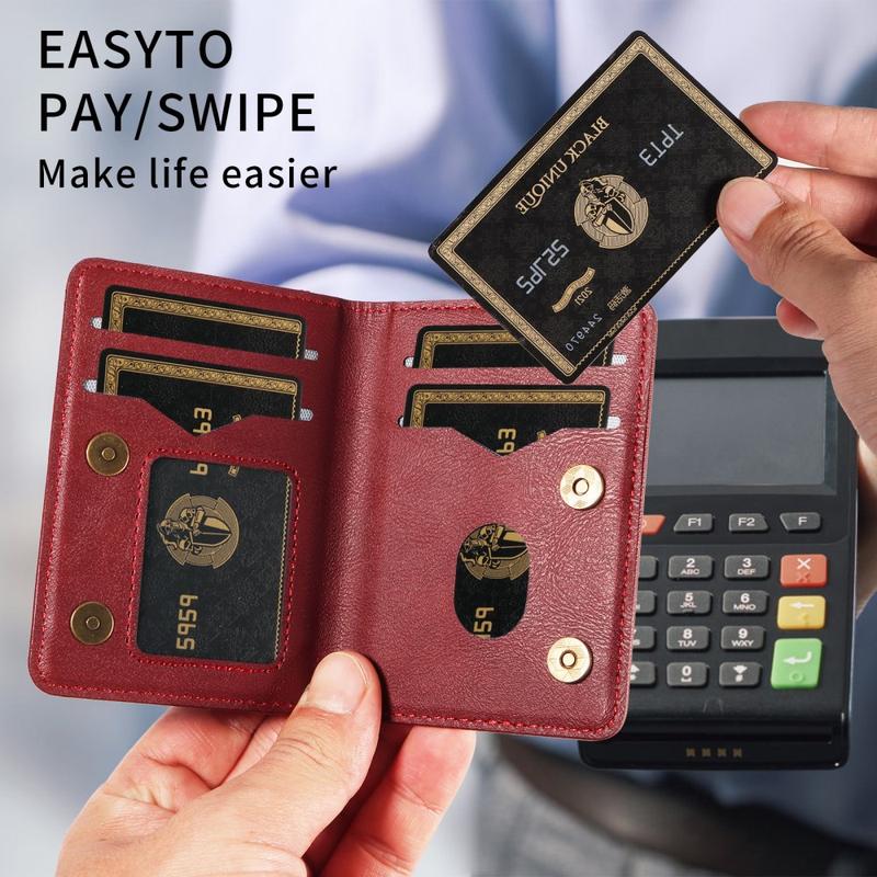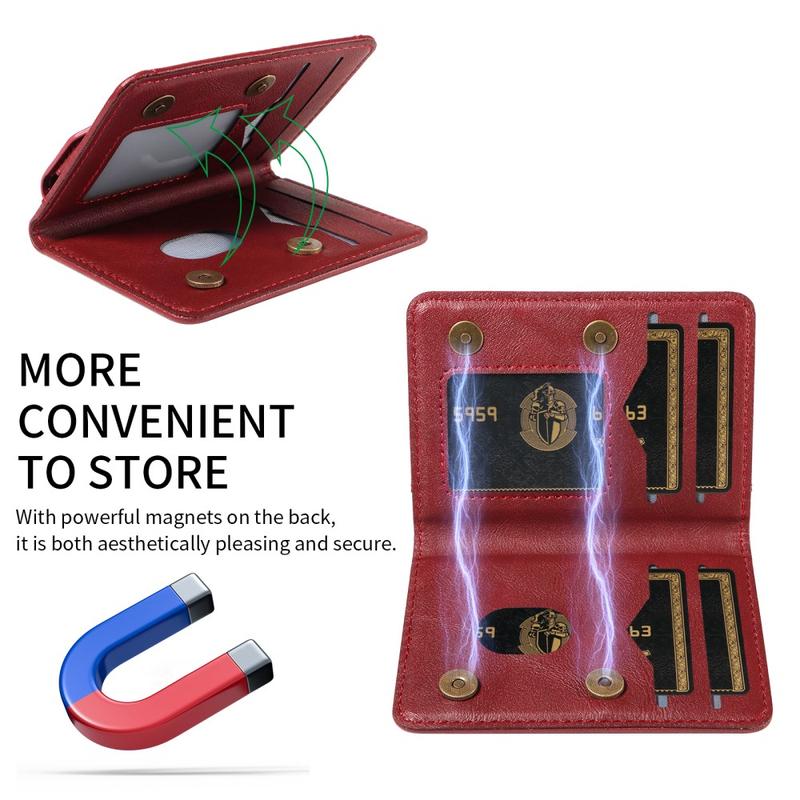 Denne lommeboken tilbyr funksjonalitet, sikkerhet og stil i ett kompakt tilbehør. Med sterk magnetisk festeanordning, RFID-beskyttelse og et innebygd stativ forenkler den den daglige bæringen samtidig som den forbedrer telefonens brukervennlighet.