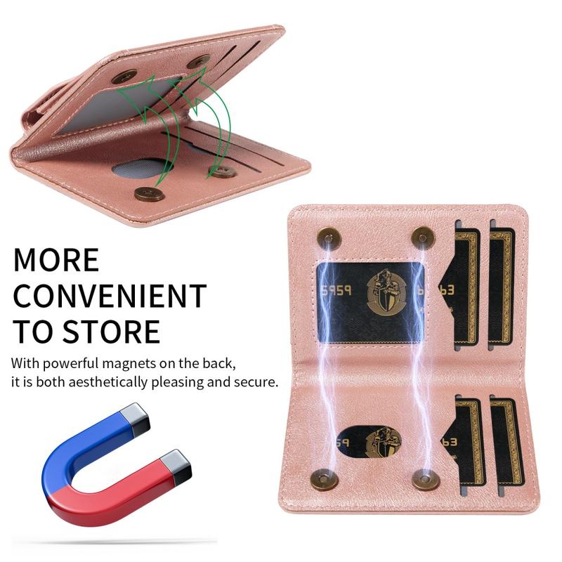 Denne lommeboken tilbyr funksjonalitet, sikkerhet og stil i ett kompakt tilbehør. Med sterk magnetisk festeanordning, RFID-beskyttelse og et innebygd stativ forenkler den den daglige bæringen samtidig som den forbedrer telefonens brukervennlighet.