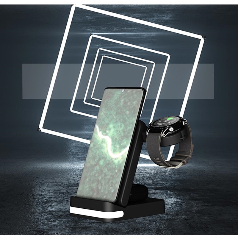 - 3-i-1 trådløs lading - lader smarttelefonen, Samsung Galaxy Watch og øreproppene samtidig, noe som sikrer effektiv strømtilførsel til alle enhetene dine.