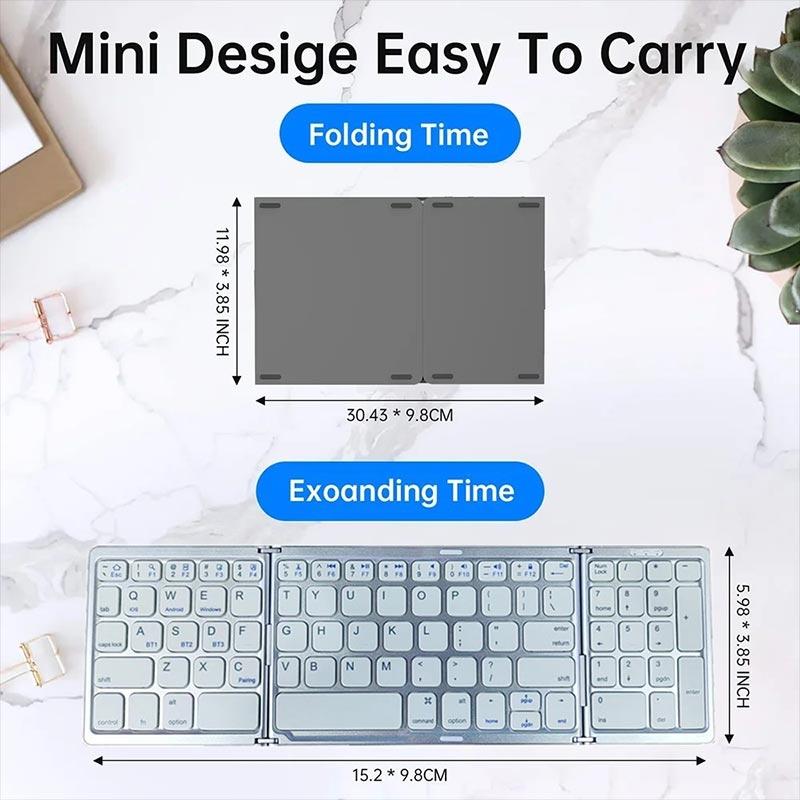 Den smarte trefoldige utformingen gjør det enkelt å ha med seg i en veske, ryggsekk eller laptop-veske, mens den magnetiske lukkingen bidrar til å holde det sikkert sammenfoldet under transport. Med støtte for opptil tre Bluetooth-enheter kan du enkelt bytte mellom telefonen, nettbrettet og den bærbare datamaskinen ved hjelp av de dedikerte BT1-, BT2- og BT3-tastene. Dette gjør tastaturet spesielt nyttig for multitasking på tvers av ulike enheter og operativsystemer.