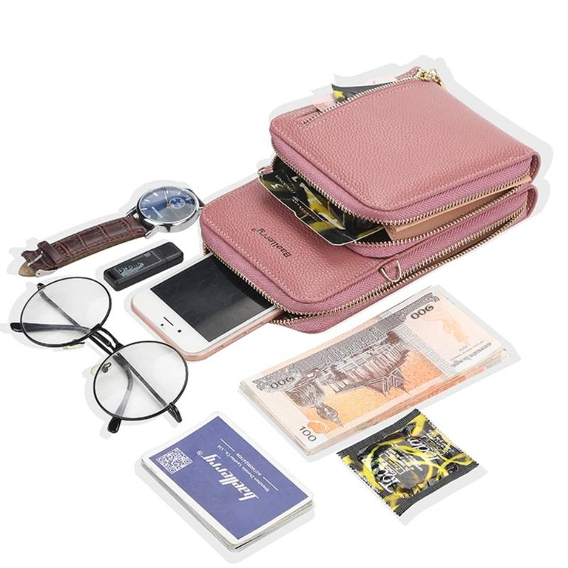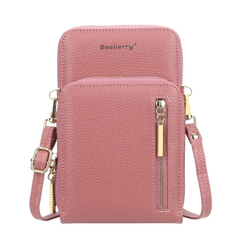 BAELLERRY N0110 Dobbeltlags lommebok med glidelås i PU-lær og mobiltelefonveske med skulderstropp - Deep Pink