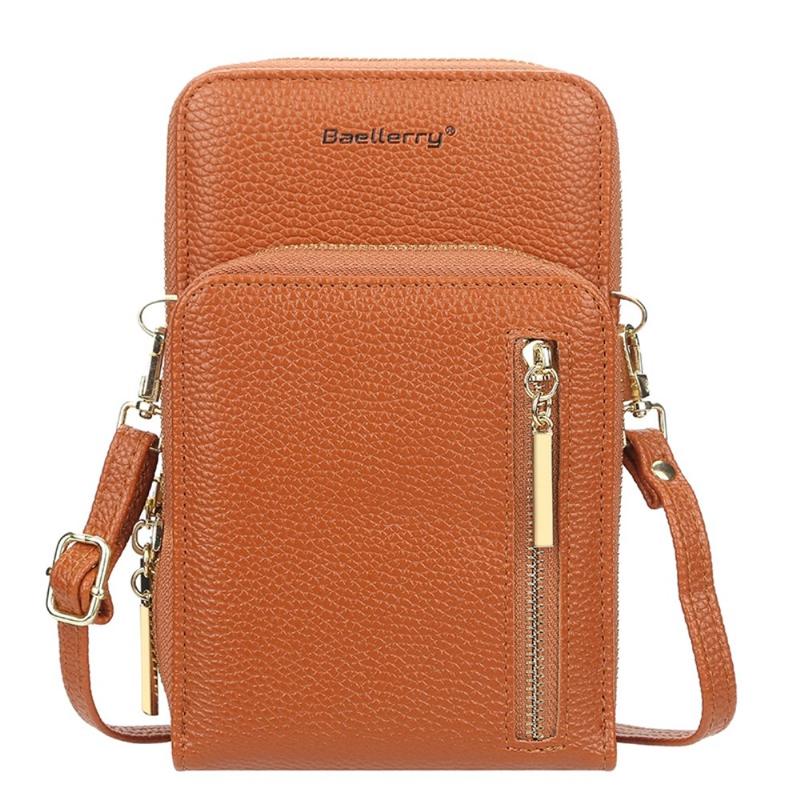 BAELLERRY N0110 Dobbeltlags lommebok med glidelås i PU-lær og mobiltelefonveske med skulderrem for kvinner - brun
