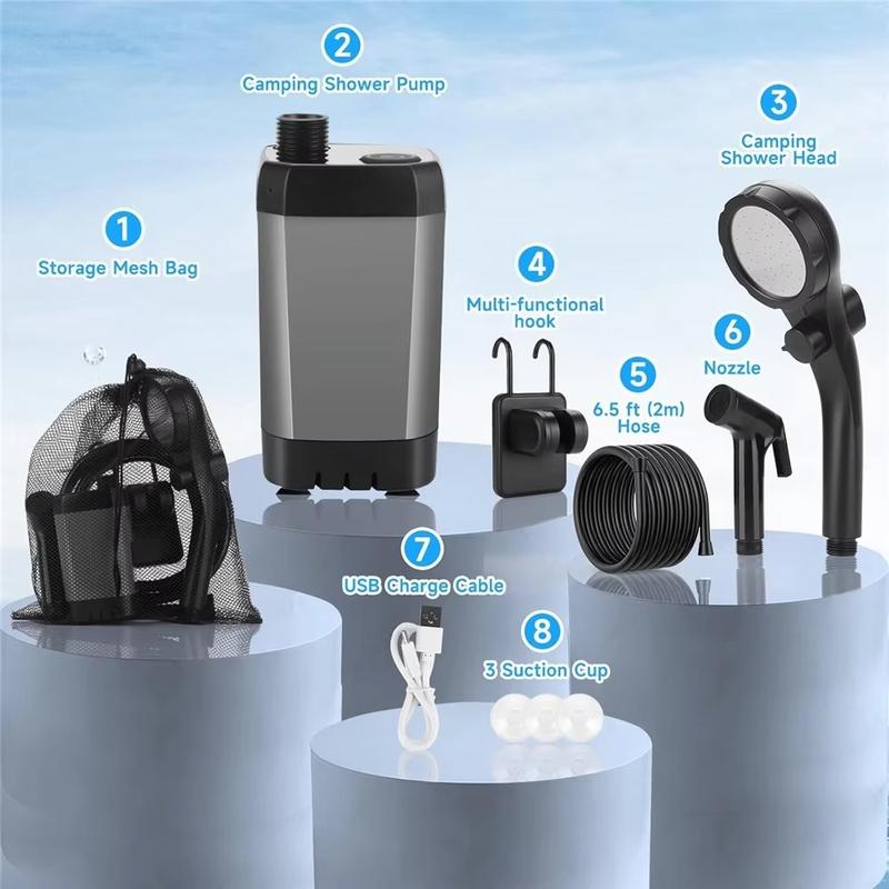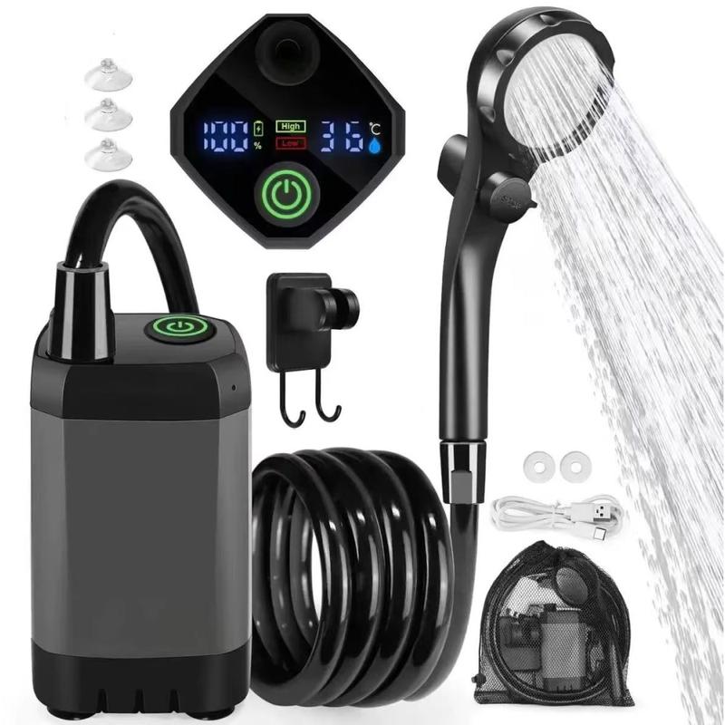 Denne bærbare elektriske dusjpumpen er utviklet for å gjøre utendørs vask enklere, mer behagelig og mer fleksibel uansett hvor du befinner deg. Med et innebygd batteri på 6000mAh, IPX7-vanntett beskyttelse og et smart digitalt display er den et praktisk valg for camping, bobilferier, strandturer, fotturer, vask av kjæledyr og utendørs rengjøring. Den trådløse utformingen og det komplette tilbehørssettet gjør at du kan nyte et mer praktisk dusjoppsett uten å være avhengig av en fast vannkilde eller strømuttak.