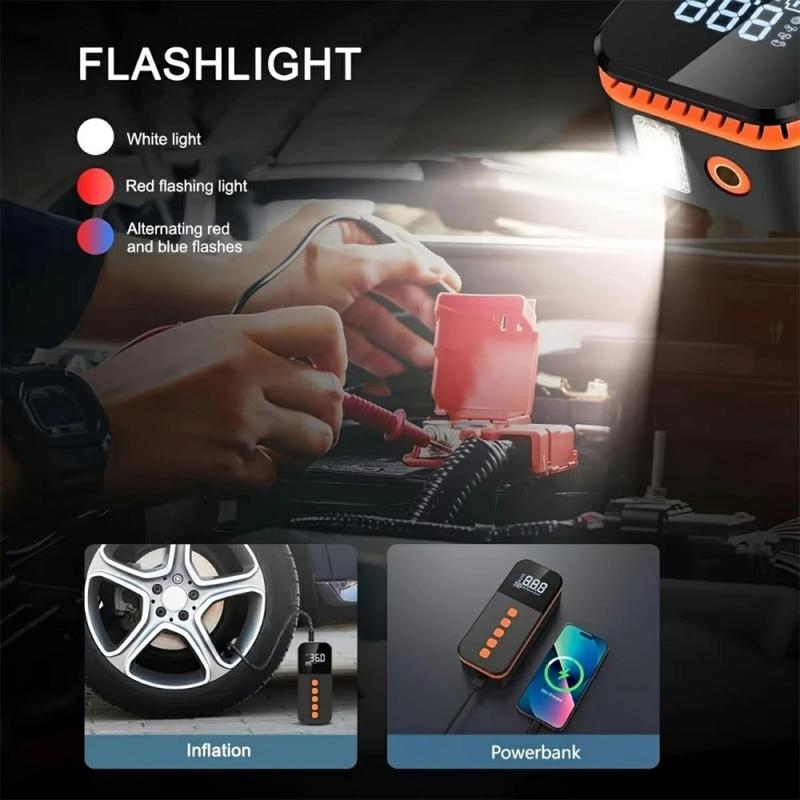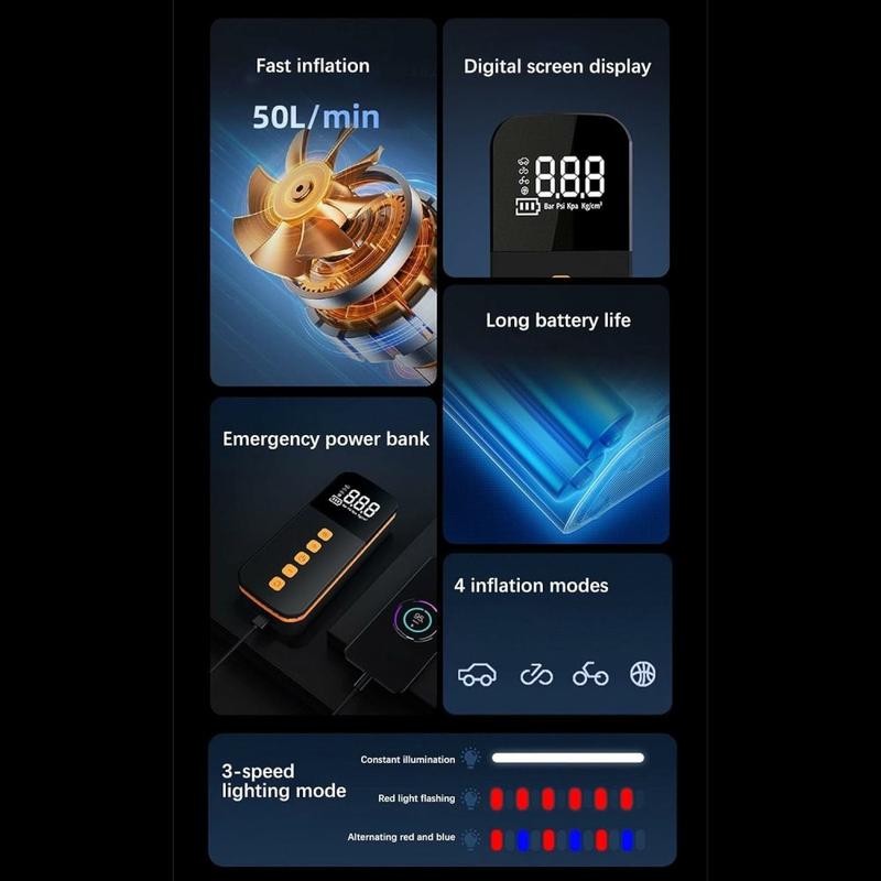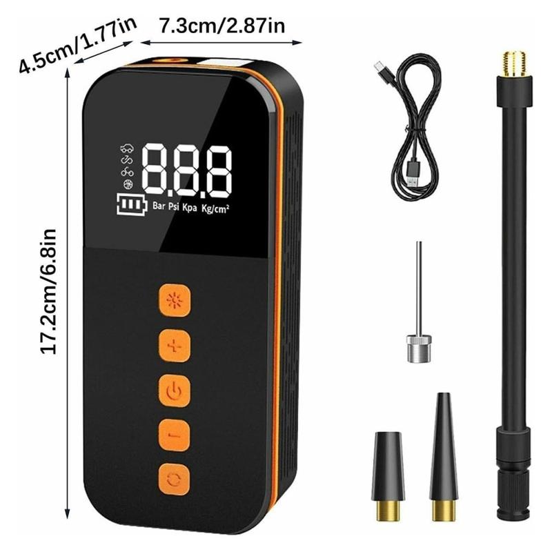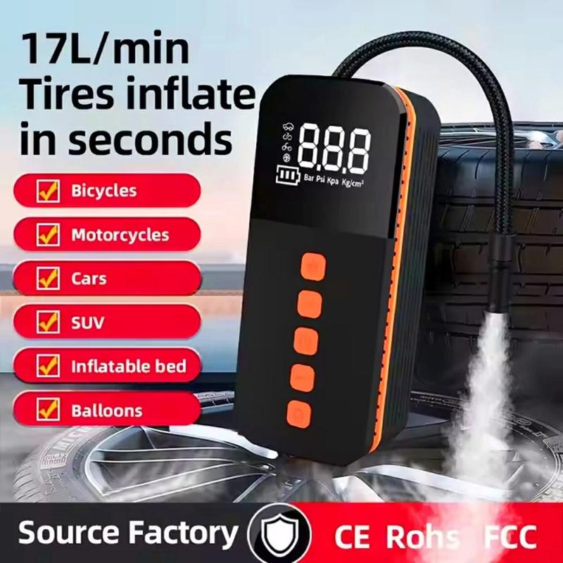 Vær forberedt på veien med denne bærbare luftpumpen for bildekk, en kompakt og kraftig trådløs luftpumpe som er designet for rask oppblåsing av dekk og allsidig bruk. Med et smart digitalt display, forhåndsinnstilte moduser og en høytrykkskapasitet på opptil 150 PSI kan du enkelt pumpe opp bil-, motorsykkel- og sykkeldekk - eller til og med sportsballer. Den bærbare koppstørrelsen, det oppladbare batteriet og det innebygde LED-lyset gjør den til et uunnværlig verktøy for bilførere og friluftsentusiaster.