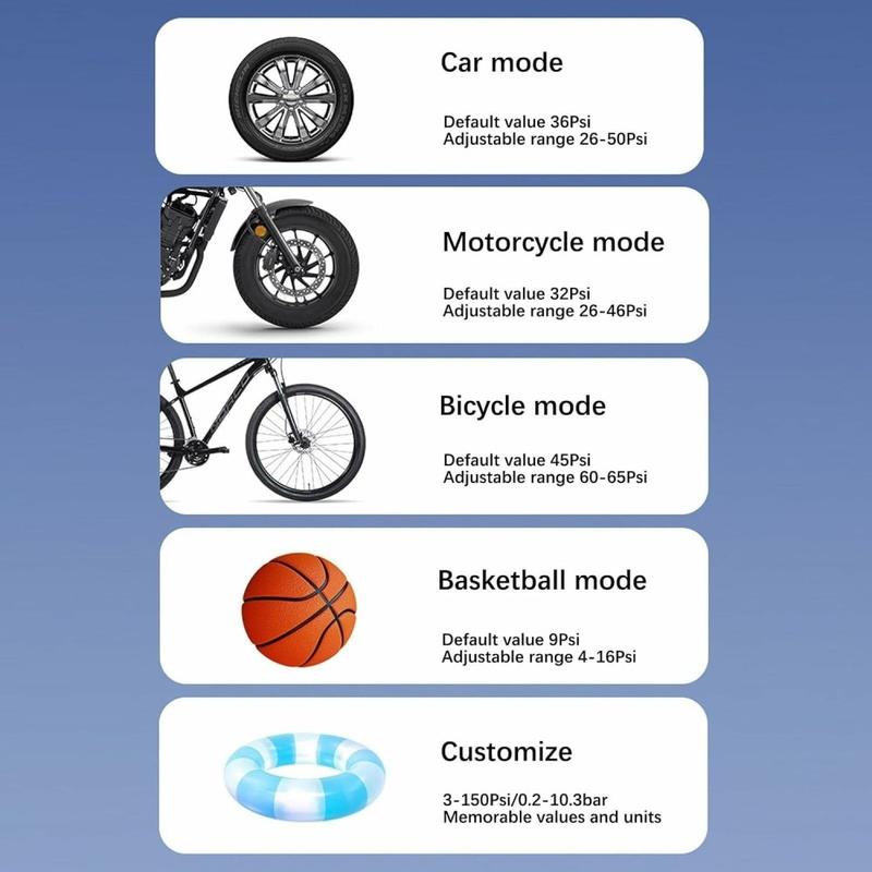 - Høytrykkskraft: Pumper opp til 150 PSI, egnet for et bredt spekter av dekkstørrelser.