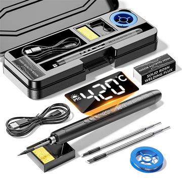 Dette kompakte loddesettet kombinerer bærbarhet, bekvemmelighet og allsidighet i én enhet. Den oppladbare utformingen gjør at du ikke trenger en fast strømtilkobling, mens den digitale temperaturkontrollen og de utskiftbare spissene lar deg håndtere et bredt spekter av loddeoppgaver. Det er spesielt nyttig for hobbyister og brukere som ønsker en enkel loddeløsning for daglig reparasjonsarbeid.