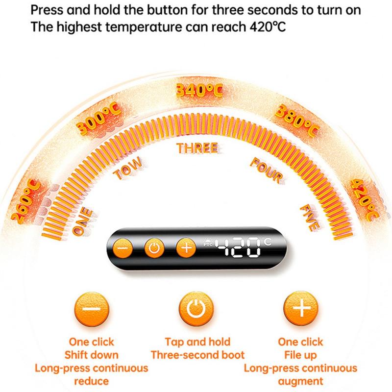 - Fem justerbare temperaturnivåer fra 260 °C til 420 °C
