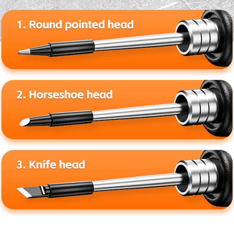 - Inkluderer tre utskiftbare spisser: rund spiss, hestesko og kniv