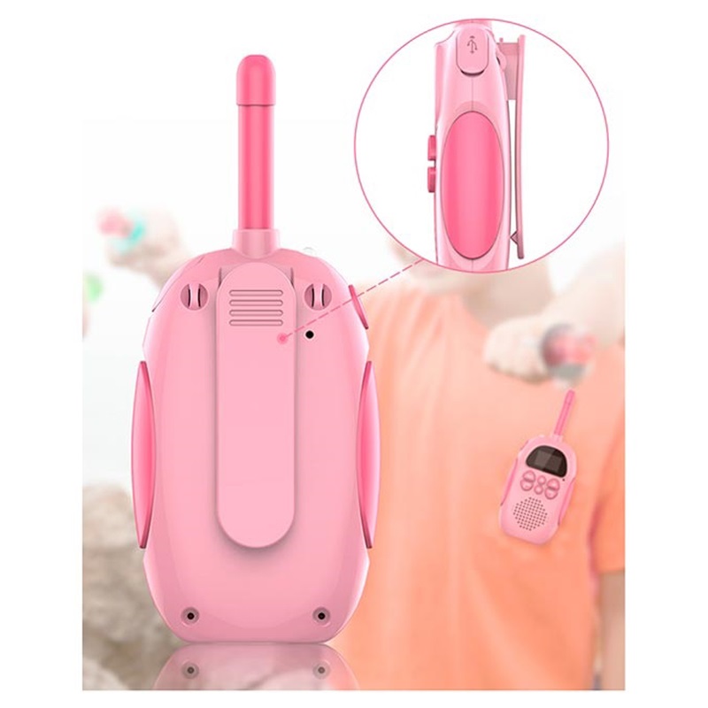 Dette walkie-talkie-settet med to enheter gir barna nye måter å leke og kommunisere med hverandre på. Denne modellen har også en LED-lampe for ekstra sikkerhet om natten. Samtidig er grensesnittet med LCD-skjerm og store knapper enkelt å bruke, og den vær- og støtsikre konstruksjonen gjør walkie-talkiene egnet for bruk utendørs.