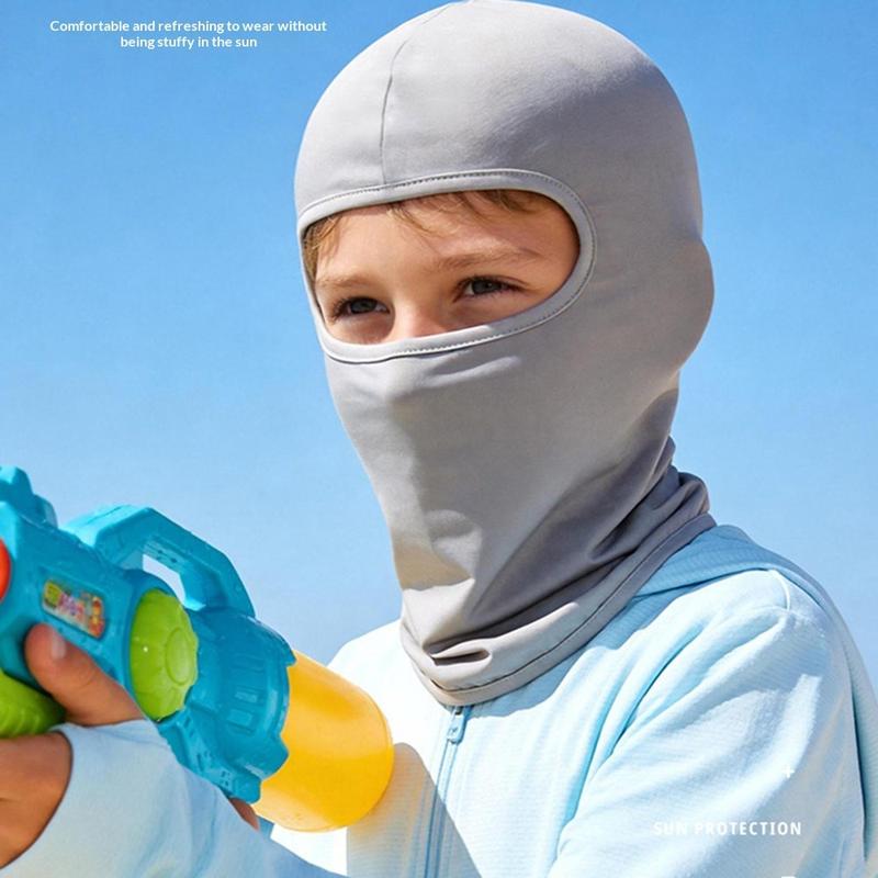 Beskytt barnet ditt under solrike utendørsaktiviteter med denne ansiktsmasken for barn. Den er laget av mykt is-silke-stoff og gir lett dekning av hele hodet og ansiktet, samtidig som den bidrar til å holde huden kjøligere og mer behagelig i varmt vær.