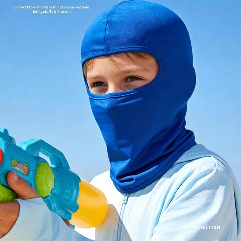 Beskytt barnet ditt under solrike utendørsaktiviteter med denne ansiktsmasken for barn. Den er laget av mykt is-silke-stoff og gir lett dekning av hele hodet og ansiktet, samtidig som den bidrar til å holde huden kjøligere og mer behagelig i varmt vær.