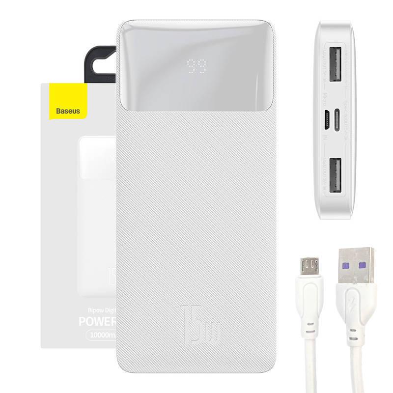 PowerBank Baseus Bipow 10000mAh, 2xUSB, USB-C, 15W (hvit)