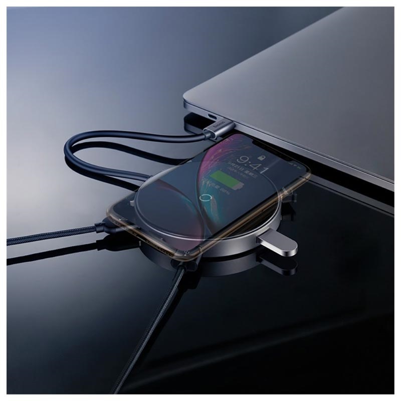 Utstyr MacBook, MateBook eller en annen USB-C bærbar PC med fire USB-porter! Baseus Circular Mirror trådløs lader/hub er designet med en USB 3.0 og tre USB 2.0-porter, som lar deg overføre filer og koble til eksterne USB-enheter, for eksempel et tastatur, en mus, en USB-minnepinne osv. USB 3.0-porten lar deg Overfør filer til en hastighet på 5 Gbps, mens USB 2.0-porter lar deg overføre data til en hastighet på 480 Mbps.
