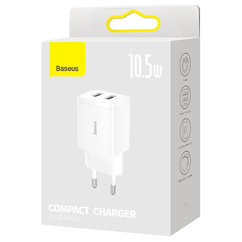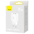Baseus Compact Vegglader med 2 USB-portere - 10,5W - EU-plugg