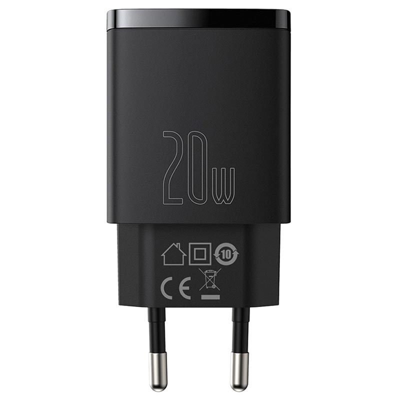 Baseus Compact Vegglader 20W - USB-C, USB-A, QC3.0, PD3.0, Apple 2.4, BC 1.2 - EU-plugg