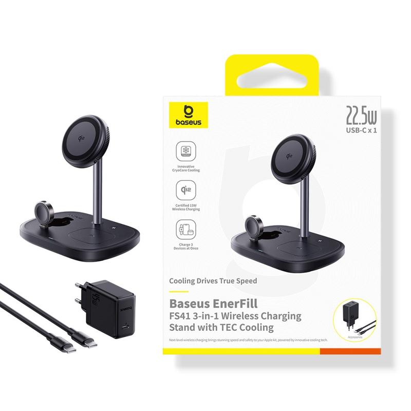 Baseus EnerFill FS41 3-i-1 trådløst ladestativ med TEC-kjøling - Qi2, 22.5W, EU-kontakt