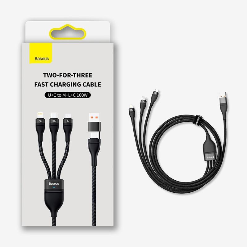 Baseus Flash Series II 100W 3-i-2 hurtigladekabel - 1.2m - USB-A- og USB-C-inngang til USB-C Lightning og Micro USB, nylonflettet