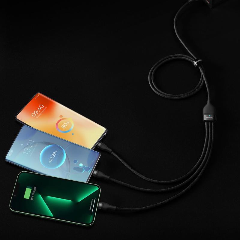 Baseus Flash Series-kabelen er et smart valg hvis du ønsker maksimal kompatibilitet og sterk ladeytelse i én holdbar kabel. Dobbel inngang gjør den fleksibel med eldre og nyere ladere, tre utganger dekker de fleste enheter, og strømstyringsbrikkene bidrar til å holde ladingen stabil og sikker. Den flettede konstruksjonen og LED-indikatorene gir ekstra bekvemmelighet og langvarig pålitelighet.