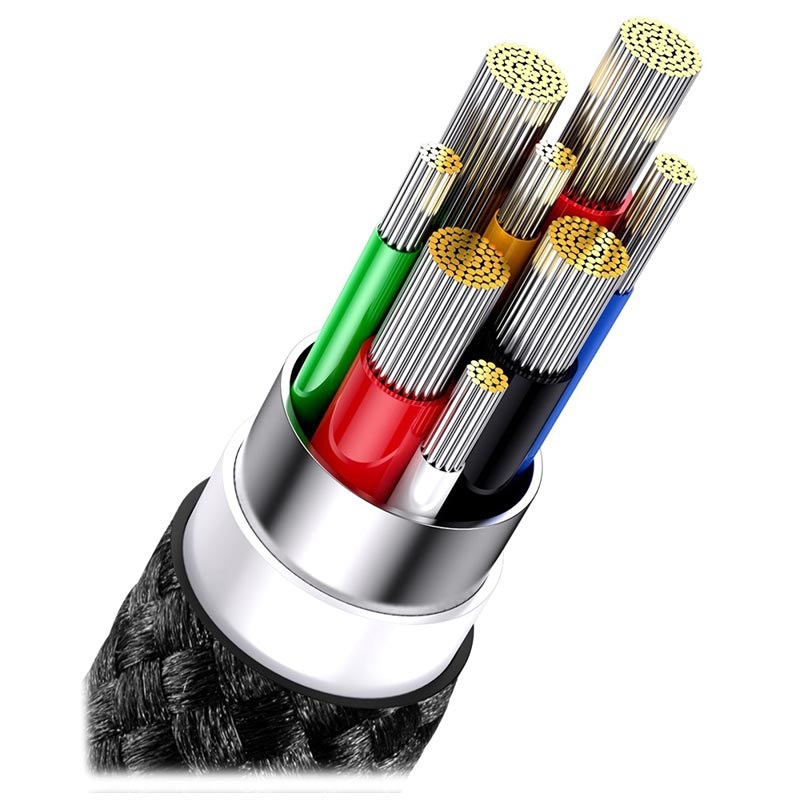 Hurtiglade opptil tre enheter samtidig (Lightning, Type-C, microUSB) takket være den flettede