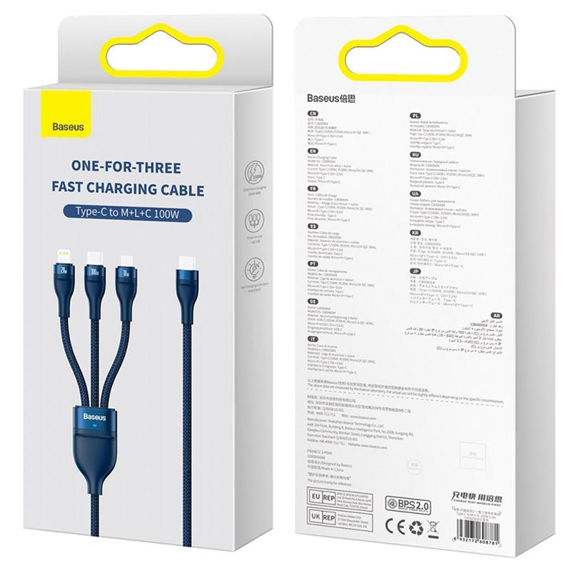 Baseus Flash Series II 3-i-1 Rask Ladekabel - Lightning, USB-C, microUSB - 100W, 1.5m