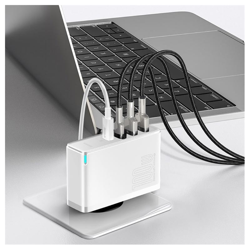 Bruk Baseus GaN2 Pro rask lader med flere porter for å lade flere enheter på kortere tid med bare en plugg. Utrolig 100W utgangseffekt, to Type-C og to USB-porter lar deg lade opp fire av gadgetene dine samtidig på den raskeste måten. Den støtter flere hurtigladeprotokoller gjennom alle fire porter, oppgradert BPS 2 flerportladeteknologi, overspenning, overstrøm, overstrøm, kortslutningsbeskyttelse og BCT-kjølesystemet for sikker og pålitelig lading.