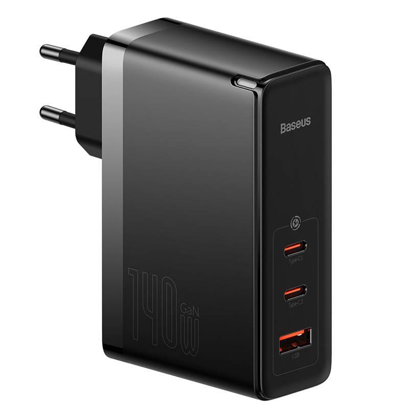 Baseus GaN5 Pro 2xUSB-C + USB-nettlader, 140W (svart)