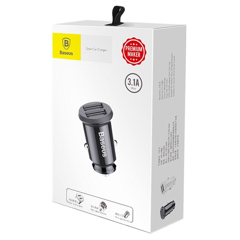 Den nye generasjonens Baseus Grain smart billader har et hus i ministørrelse, men den har nok strøm til lading av to enheter samtidig. Denne Baseus Grain mini-billaderen har to USB-porter med en blå LED-indikator til en praktisk bruk om natten. Hver USB-port kan levere opptil 2,1 A med utgangseffekt, men med en maksimal, kombinert effekt på 3,1 A.