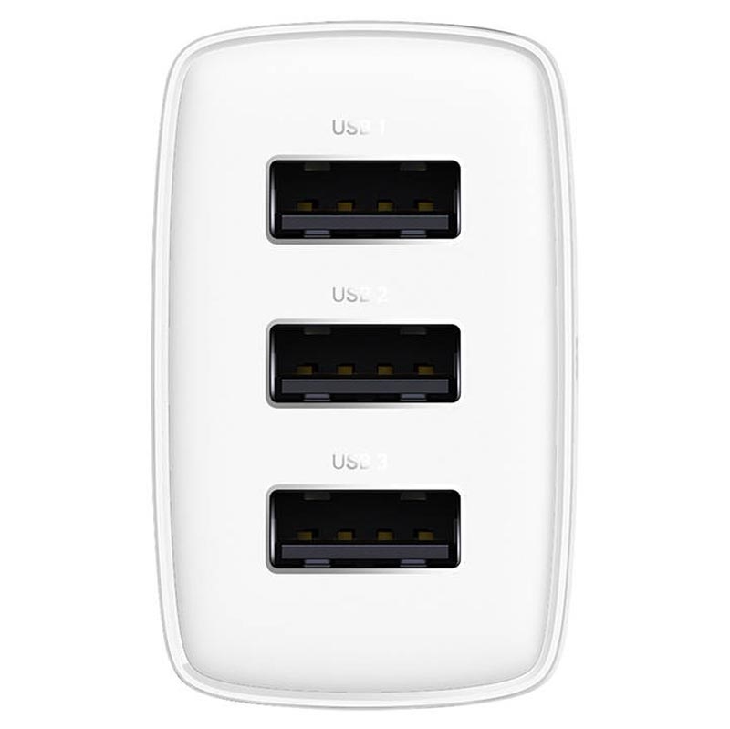 Baseus Compact Quick Charger, 3x USB, 17W (Hvit)