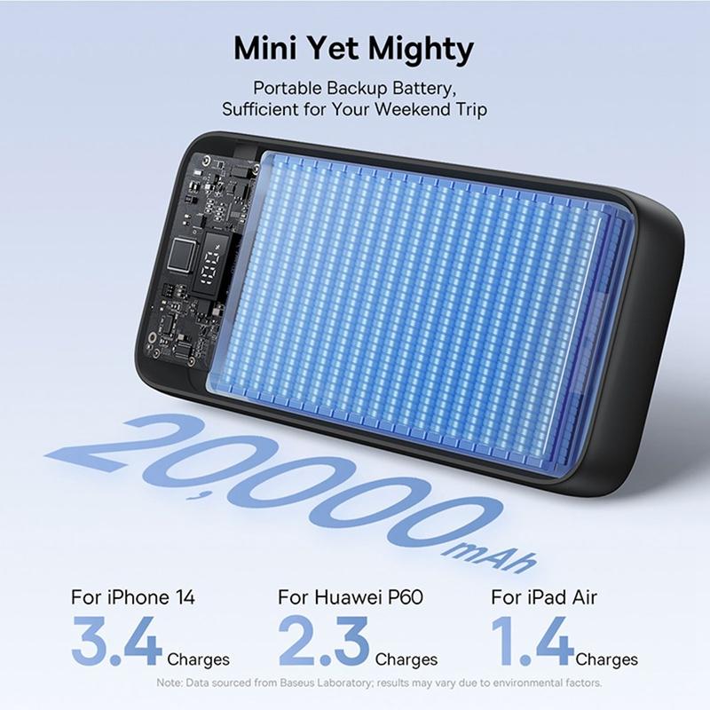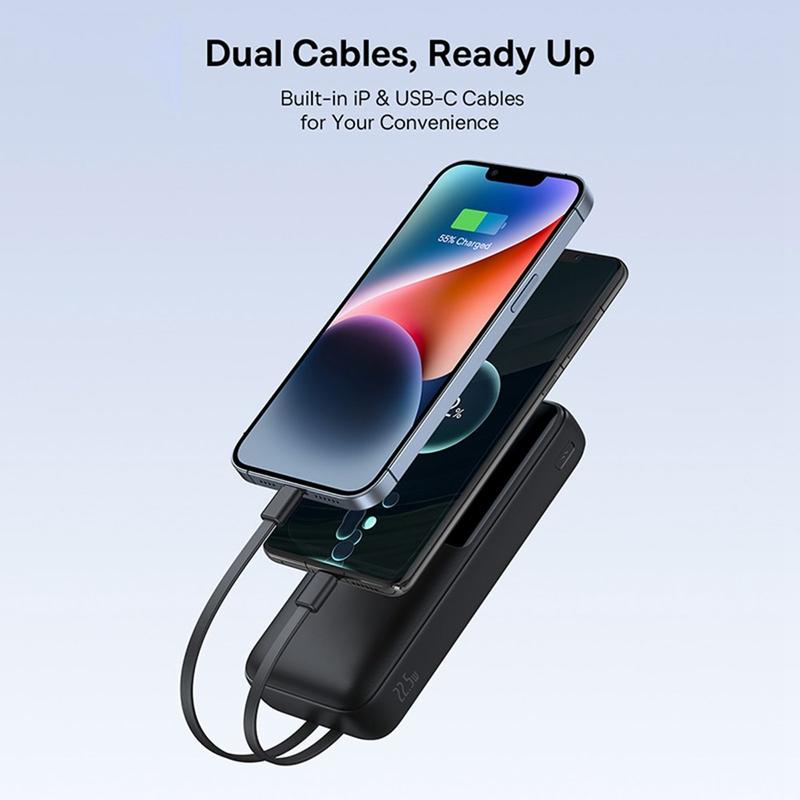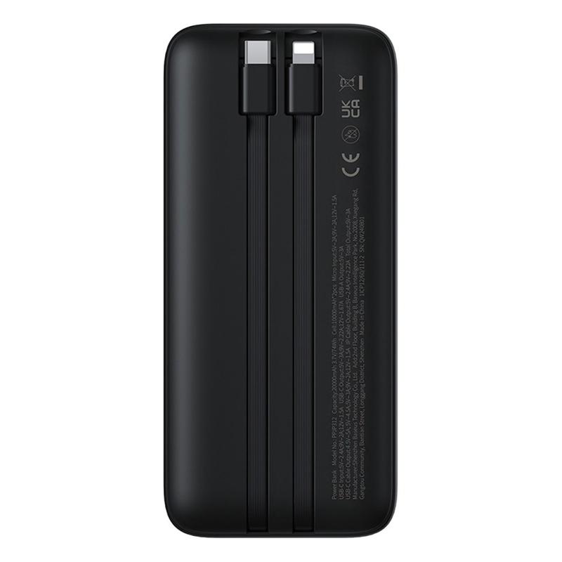 Baseus Lipow 22.5W Power Bank 20000mAh med innebygde Lightning- og USB-C-kabler og LED-skjerm