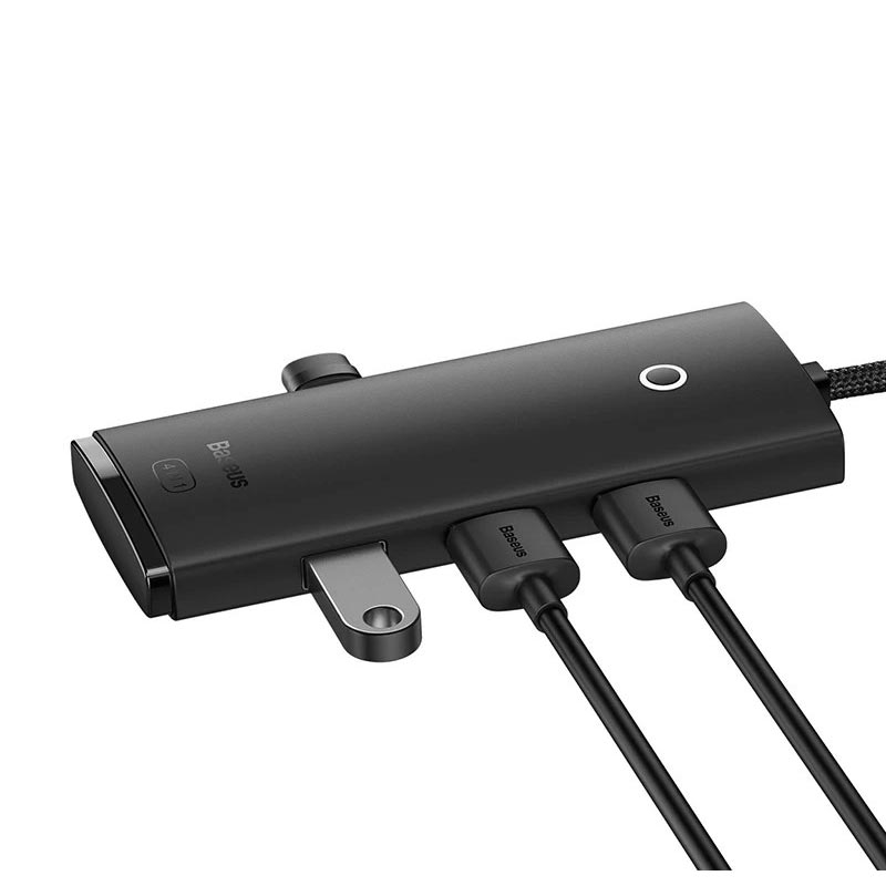 Utvide mulighetene dine og få 4 i 1 Baseus Lite Series hub. Dette produktet er utstyrt med 4 USB 3.0-porter, slik at du kan overføre filer med en hastighet på opptil 5 GB/s. Takket være plug&play-drift kan du bruke huben uten å installere ekstra programvare, og takket være bred kompatibilitet vil produktet fungere uansett hvilket system du jobber på.