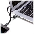 Denne modellen leveres med en klemme som holder den flate kabelen kompakt og floker seg ikke. Den støtter dataoverføring med opptil 480 Mbps og lading med opptil 2A.
