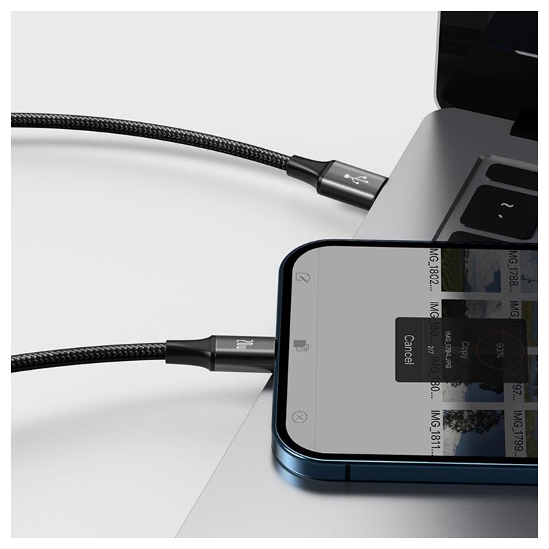 Baseus Rapid 3-i-1 USB-C-kabel kobler seg til tre forskjellige porter for rask lading av flere enheter med bare én strømkontakt. Denne 1,5m-kabelen med USB-C, MicroUSB og Lightning-kontakter støtter Power Delivery 20W hurtiglading og 480Mbps overføringshastighet. Den er laget av kvalitetsflettet nylon og kontakter av høy renhet i aluminiumslegering for å tåle vridning og bøyning.