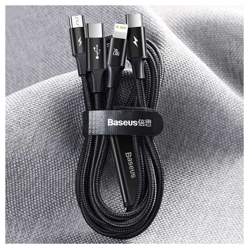 Baseus Rapid 3-i-1 USB Type-C Kabel CAMLT-SC01 - Lightning, USB-C, MicroUSB, PD 20W, 3A, 2A - 1.5m