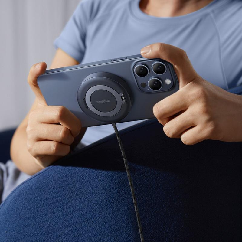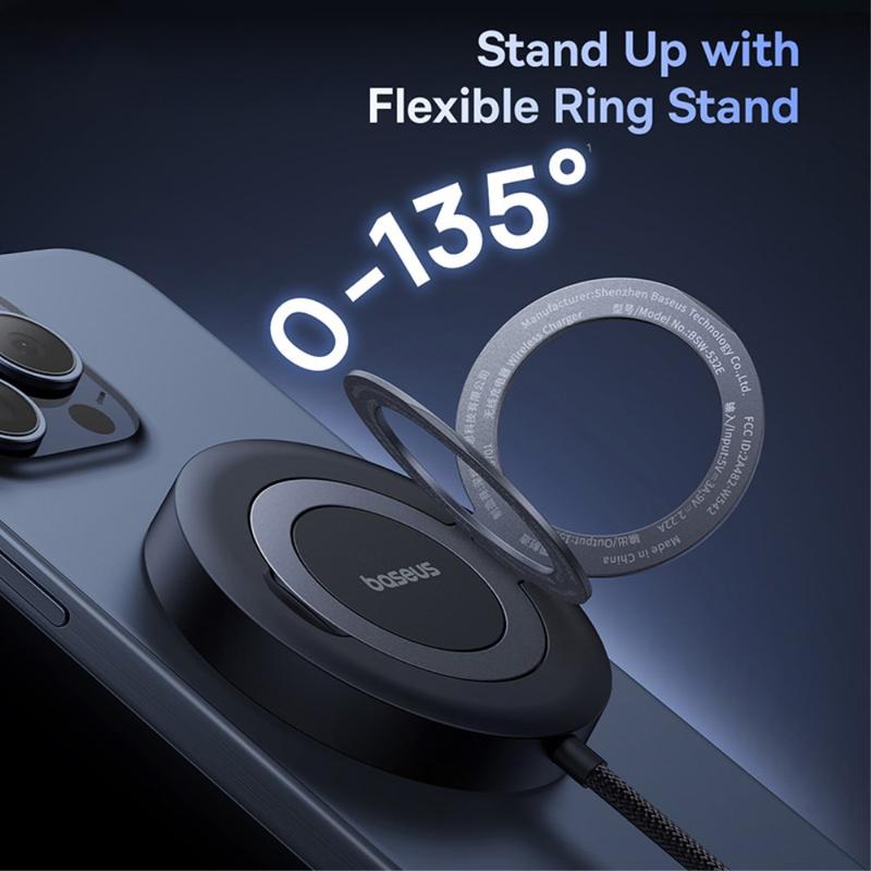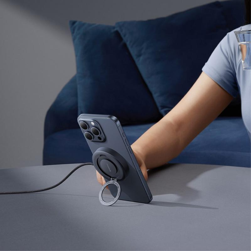 Oppgrader ladeopplevelsen med BASEUS Simple Mini4 magnetisk Qi2 Wireless Charging Stand. Denne allsidige laderen har offisiell Qi2-sertifisering og et fleksibelt ringstativ, og sørger for sikker lading av telefonen samtidig som den holdes i en ideell synsvinkel.