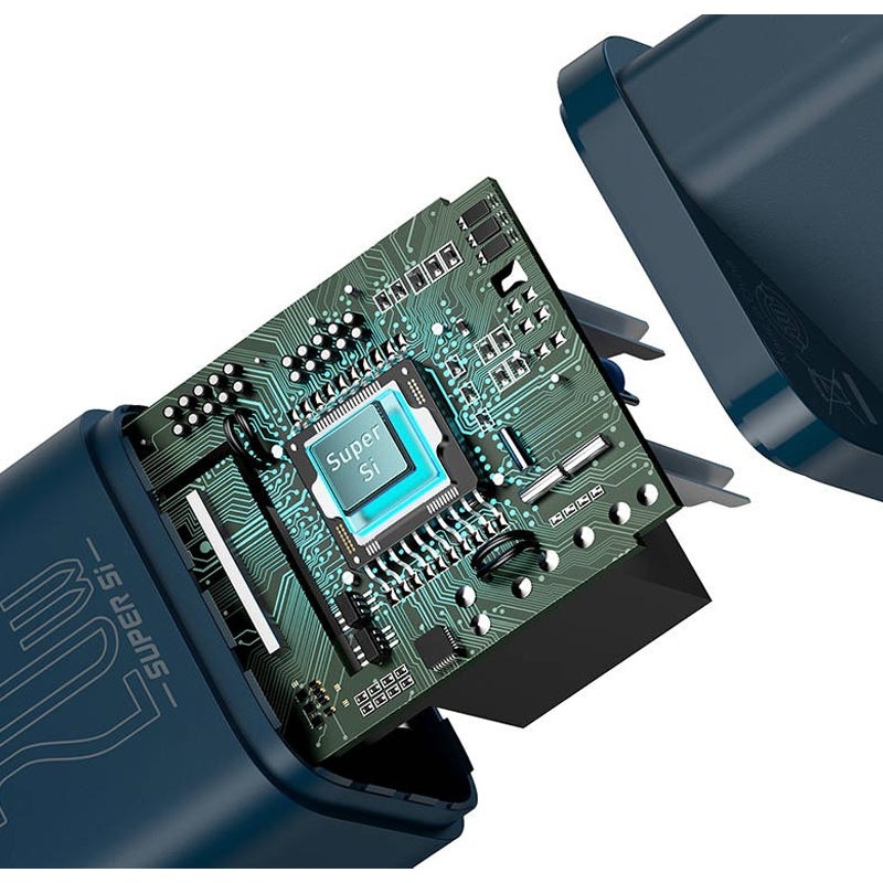Baseus-laderen justerer automatisk strømverdien i henhold til typen enheter som får strøm for å sikre optimal ladehastighet og beskytte dem mot skader. Enheten har også en spesiell beskyttelse mot blant annet overbelastning, kortslutning og overoppheting. Huset i ABS-plast bidrar til en mer effektiv varmefordeling, noe som beskytter deg mot brannskader og forhindrer skader på laderen.