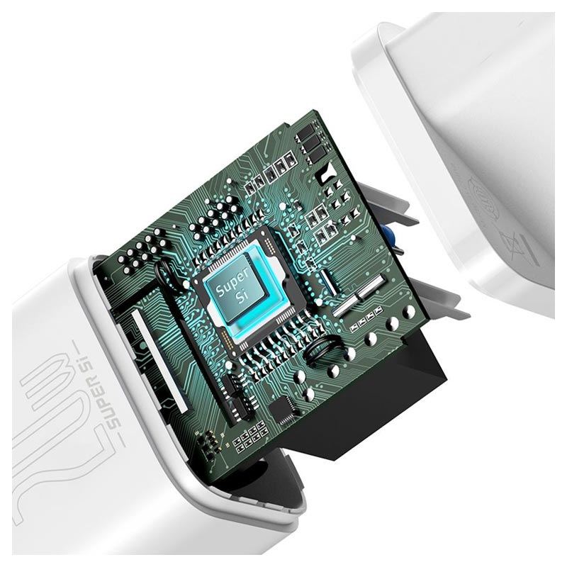 Den er liten og lett, og denne Super Si Quick-laderen fra Baseus holder enheten fulladet. Super Si black teknologi forbedrer laderens hastighet, reduserer størrelsen slik at den kan bli mindre, og hjelper deg med å operere trygt under høye temperaturforhold. Få raskere ladetid med 3 ganger med denne hurtigladeren; enheten blir ladet til rundt 50% på 30 minutter.