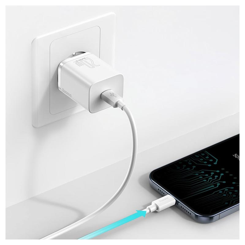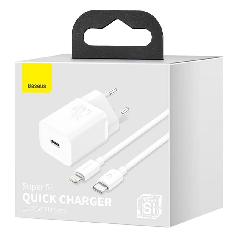 Baseus Super Si Rask Lader med USB-C / Lightning Kabel og Power Delivery - 20W, EU-plugg