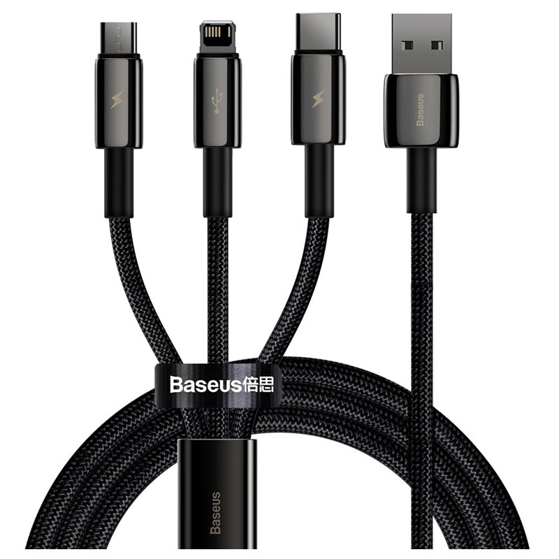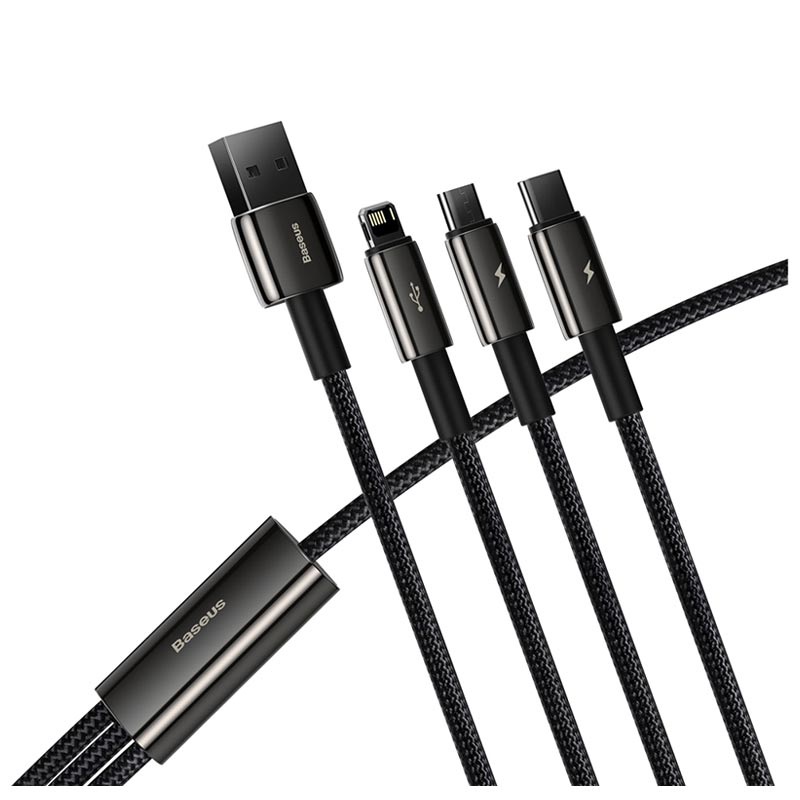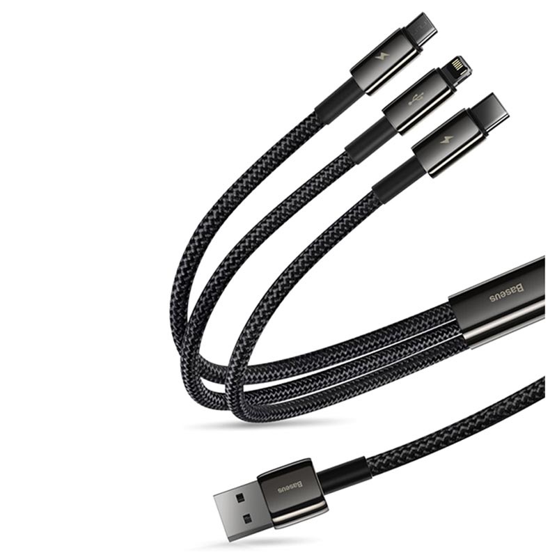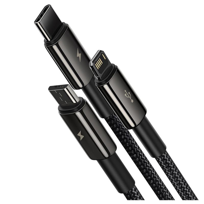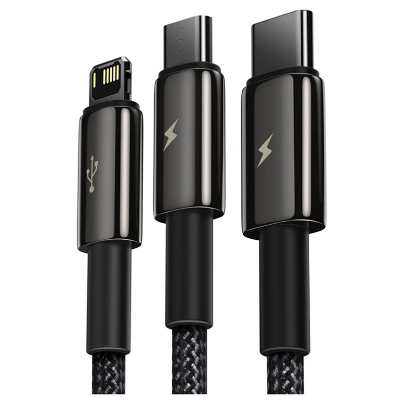 Baseus Tungsten Gold 3-i-1 Hurtigladekabel - Micro USB, USB Type-C, Lightning