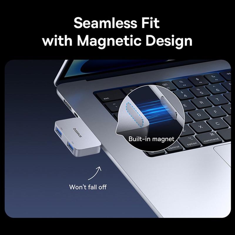 BASEUS UltraJoy Series 2-i-1-hub har den perfekte balansen mellom ytelse og bærbarhet. Med plug-and-play-designet slipper du ekstra kabler, samtidig som høyhastighets dataoverføring og overlegen temperaturkontroll gir en stabil brukeropplevelse. Enten du er en travel yrkesutøver, en kreativ entusiast eller bare ønsker å utvide den bærbare datamaskinens muligheter, tilbyr denne huben en fleksibel og problemfri løsning.