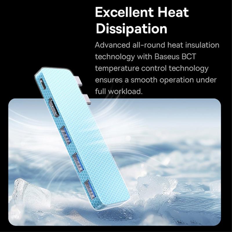 Gi arbeidsstasjonen din et løft og få lynrask dataoverføring med BASEUS UltraJoy 40 Gbps USB-C Multiport Hub. Denne ultratynne adapteren er konstruert for sømløs tilkobling og gir deg en rekke porter - fra en 4K HDMI-utgang til tre USB 3.0-kontakter - samtidig som den støtter opptil 100 W strømforsyning for uavbrutt lading. Den magnetiske designen, den innovative temperaturkontrollen og den kompakte profilen gjør den til et kraftig verktøy for profesjonelle og teknologientusiaster som krever topp ytelse på minimal plass.