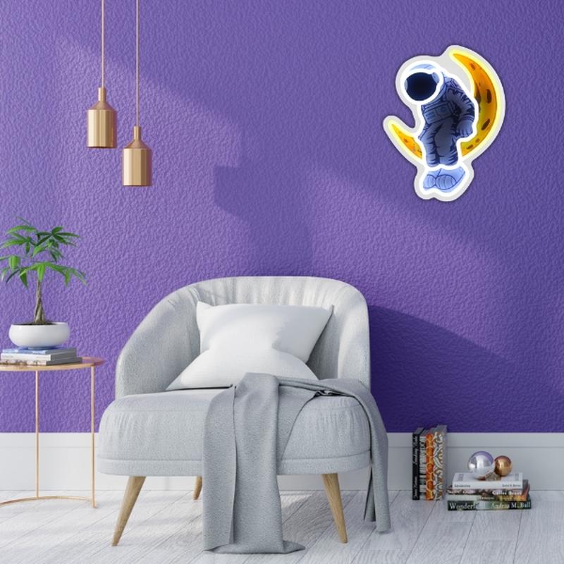 Lys opp rommet ditt med et snev av futurisme og undring. Neon Beline Light viser en astronaut som svever på månen, og kombinerer myke gule og kjølige blå fargetoner i en fantastisk neonskjerm. Den er ideell for alle rom og skaper en iøynefallende, stemningsfull glød som fanger fantasien.